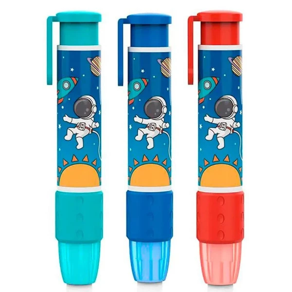 Caneta Borracha Mercur Sistema Solar: caneta divertida com borracha temática do Sistema Solar. Ideal para uso escolar, combinando praticidade e design criativo.