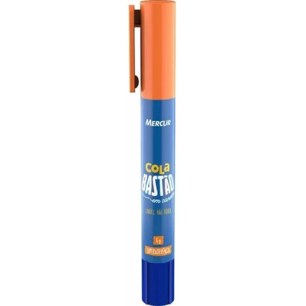 Cola Bastão em Caneta 6g Mercur: prática e precisa, ideal para colagens rápidas. Compacta, não faz sujeira e é perfeita para uso escolar ou no escritório.